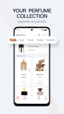 Aromoshelf: Perfume App je váš digitální svět vůní. Prozkoumejte, organizujte a znovu se zamilujte do parfémů. Najděte svůj osobitý podpis a spravujte sbírku v přehledné digitální knihovně.