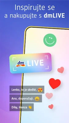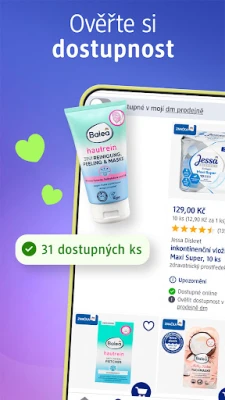 Užijte si bezproblémové nakupování s intuitivním vyhledáváním, kategoriemi a funkcí skenování, která vám pomůže okamžitě najít přesně to, co potřebujete. Sledujte své oblíbené značky a snadno objednejte dříve zakoupené položky. Propojte si své zákaznické konto s programem active beauty a získejte přístup k centrálnímu úložišti eKuponů, které se aktivují a uplatní s nevídanou lehkostí, a sbírejte body za každý nákup. Kdykoliv si můžete ověřit dostupnost zboží ve své preferované prodejně a využít možnost rychlého vyzvednutí již připravené objednávky. Navíc se připojte k dmLIVE a čerpejte inspiraci i odborné rady přímo od dm expertů v živém vysílání.