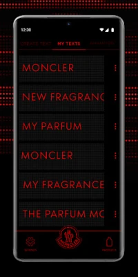Váš parfém je mnohem víc než jen vůně – je to neviditelná esence, která definuje vaši osobnost a náladu. Nyní s aplikací Moncler Parfums můžete tento intimní projev povýšit na novou, vizuální úroveň. Představte si, že vaše lahvička Moncler Parfums se stane dynamickým plátnem pro vaše vnitřní já. Tato inovativní aplikace vám umožňuje proměnit LED displej na flakonu v jedinečnou zprávu, která reflektuje vaše myšlenky, sny a momentální rozpoložení. Oživte svůj parfém a udělejte z něj vizuální prohlášení, které je stejně osobité jako vy sami.