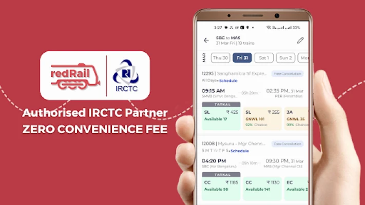 Objevte nejdůvěryhodnější indickou aplikaci pro rezervaci jízdenek na vlak, metro, autobus a hotelů. Důvěřuje jí přes 56 milionů uživatelů a denně vyřídí více než 200 000 rezervací. Váš ideální společník pro cestování.