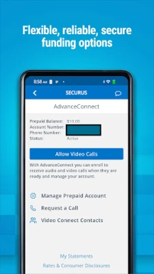 Správa vašeho účtu Securus nikdy nebyla jednodušší. V Securus Mobile můžete spravovat své kontakty, nastavovat důležitá upozornění a alarmy na stav zůstatku, aktivovat automatické platby a snadno dobíjet kredit pro předplacené volání – vše na jednom intuitivním místě. Od prvního kontaktu až po propuštění, Securus stojí při vás a nabízí spolehlivou podporu a spojení. Mějte prosím na paměti, že dostupné služby se mohou lišit podle lokality; pro podrobné informace a často kladené dotazy navštivte securustech.net.