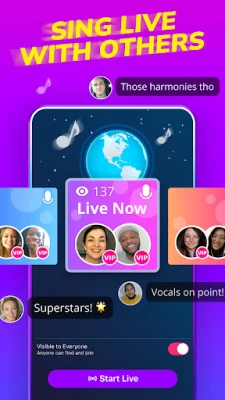 Smule je víc než jen nástroj pro zpěv; je to pulzující globální komunita, která spojuje lidi skrze hudbu. Navazujte kontakty s miliony zpěváků a fanoušků z více než 190 zemí. Vytvářejte duety, nahrávejte skupinové písně nebo se připojte k živým karaoke seancím v reálném čase. Zapojte se do tvůrčích výzev, spolupracujte na coververzích a sdílejte své nahrávky napříč sociálními sítěmi. Objevujte nové talenty, sledujte aktuální trendy nebo si prostě užijte zpívání s přáteli kdykoli a kdekoli. Smule je místem, kde hudba skutečně sbližuje, nabízí nezapomenutelné zážitky společného tvoření a posiluje spojení s lidmi po celém světě.